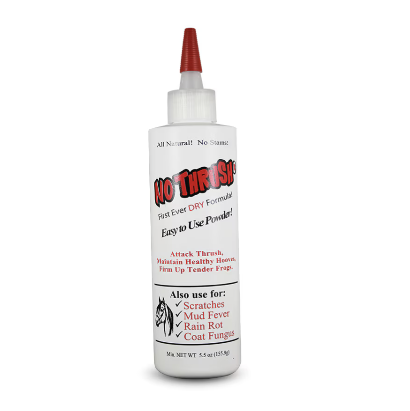 No Thrush is a tough-on-thrush, but hoof-friendly, dry remedy. It targets the bacteria and fungi causing the problem without burning or damaging healthy tissue. It’s simple to use and safe enough to apply regularly.
